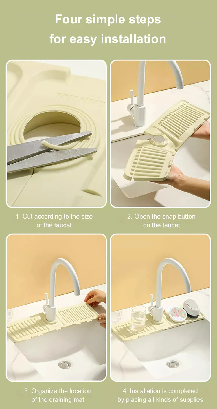 44.5*14.5cm silicone Faucet Draining Matkitchen Sink,Splash Guard, Heightened Non Slip Protects Sinks From Splashing,Soap Dispen
